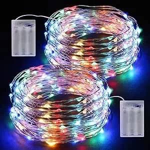 2 pacotes de 12 m e 120 LED luzes LED com pilhas coloridas são perfeitas para usar como iluminação para qualquer decoração. Inspire a sua criatividade - com pequenos micro-LEDs brilhantes, estas grinaldas de luzes são ideais para decorar a sua festa de casamento, Halloween, Natal, quarto, frascos de vidro, cerca, pátio, jardim, tenda, etc. Fácil de dar forma - as luzes decorativas do quarto são feitas de fio de cobre macio de alta qualidade que é fácil de dobrar e moldar. Decore perfeitamente o interior e o exterior! Não requer tomada: insira a bateria no compartimento da bateria e pressione o botão do interruptor para desfrutar das luzes coloridas. Como operar: 1. Insira 3 pilhas AA (não incluídas) no compartimento da bateria. Não precisa de se preocupar em eletrocutar as crianças. 2. Ligue o interruptor de energia. Nota: 1. A caixa da bateria não é completamente impermeável e não pode ser usada ao ar livre com chuva intensa. Todo o produto não deve ser submerso em água. 2. Remova a poeira e a humidade do compartimento da bateria antes de inserir a bateria. Características: Material: fio prateado Cor da luz: colorido Comprimento do cabo: 12 m / 39 pés Quantidade de LED: 120 peças Bateria: 3 pilhas AA (não incluídas). Corrente: 150-300 mA. Resistente à água: IP65 (cabo prateado) * IP44 (caixa de bateria). Embalagem: 2 Pack x 12 m grinalda de luzes 2 caixas de bateria. 1 manual de instruções (idioma português não garantido)