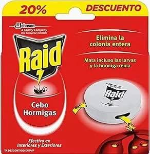 Raid cebo hormigas funciona las 24 horas y proporciona un control efectivo de las hormigas tanto en interiores como en patios y terrazas exteriores. El cebo es recogido por las hormigas obreras y transportado al hormiguero donde mata a la colonia entera, incluyendo las larvas y la hormiga reina. La duración del cebo es de varias semanas y depende del nivel de infestación. Para infestaciones severas y máxima eficacia, use varios cebos simultáneamente. Raid - trampas cebo contra hormigas, efectivo contra la colonia y larvas formato en cebos: cebo comestible que se coloca en el suelo para eliminar las hormigas. Extermina el hormiguero: el cebo es recogido por las hormigas obreras y transportado al hormiguero donde mata a la colonia entera, incluyendo las larvas y la hormiga reina. Acción continua: 2-3 semanas, las 24 horas del día. Con la garantía de calidad de Raid y Johnson. Extermina el nido: Las cucarachas comen del cebo y al volver al nido propagan su efecto contaminante a las otras cucarachas. Acción continua: 3 meses, las 24 horas del día.