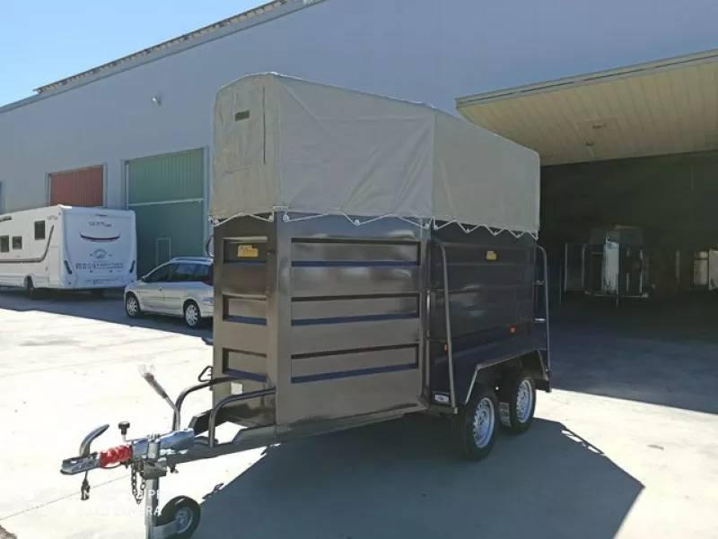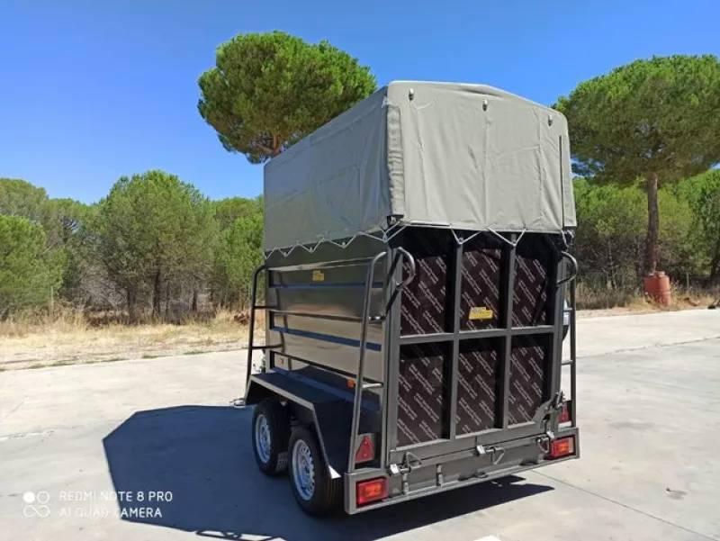 Remolque ganadero vans de 1'5 plazas para caballos-vacas. Muy fuerte, robusto, totalmente soldado y muy estable en carretera. Completamente equipado con montureros, pecheras acolchadas, luz interior, doble puerta, trasera y delantera con apertura en hoja y rampa, piso y puertas en tablero finlandés, depósito de agua exterior, rueda de repuesto y rueda jockey, freno de inercia a las 4 ruedas, freno de mano. . . Ejes, freno y cabezal de enganche marca KNOTT, primera calidad Alemana. En RMC REMOLQUES disponemos de varios modelos en stock, también de 1 y 2 plazas. Consultenos para envíos a domicilio!!!