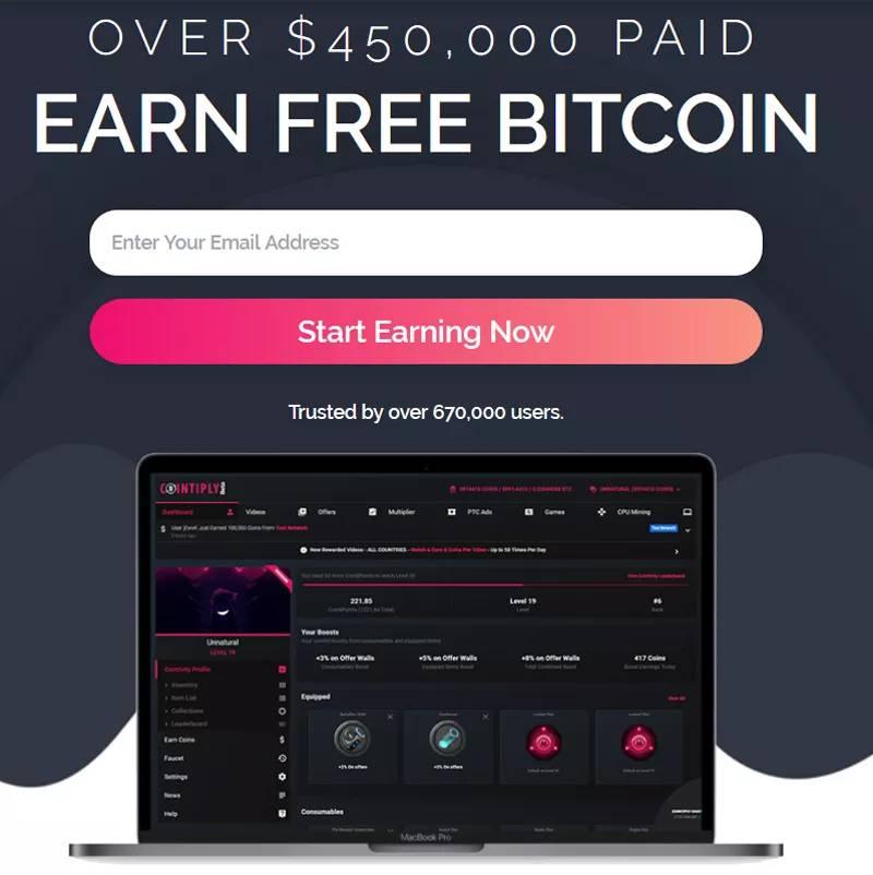 Cointiply es una de las páginas más completas a la hora de conseguir pequeñas fracciones de Bitcoin de forma totalmente gratuita. Aparte de tener su propia faucet (donde podemos reclamar satoshis gratis cada hora), dispone de multitud de opciones para aumentar nuestras ganancias de forma considerable: juegos de minería, muros de ofertas, anuncios remunerados (PTC), minería por CPU, lotería y mucho más.