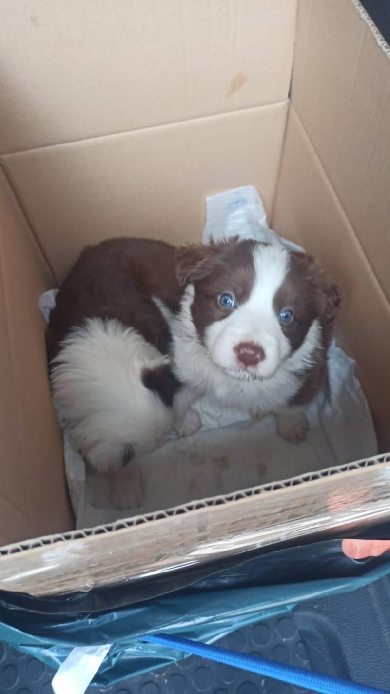 Urde adopcion cachorro border collie marrón chocolate con ojos azules, hay que pagar gastos, tiene mes y medio