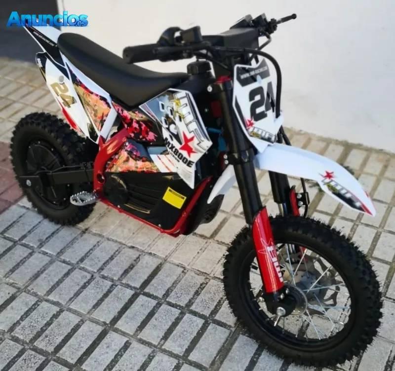 Moto electrica ideal para iniciar a los niños. Bateria de litio, horquilla invertida, ruedas 12/10, selector de 5 velocidades, 62cm de altura del asiento...