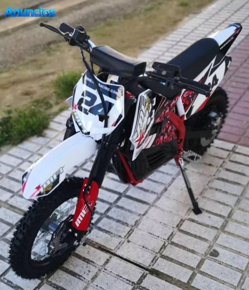 Moto electrica ideal para iniciar a los niños. Bateria de litio, horquilla invertida, ruedas 12/10, selector de 5 velocidades, 62cm de altura del asiento...