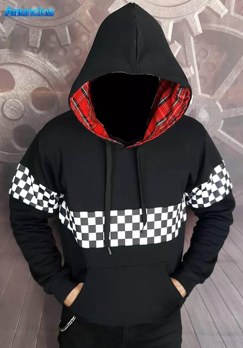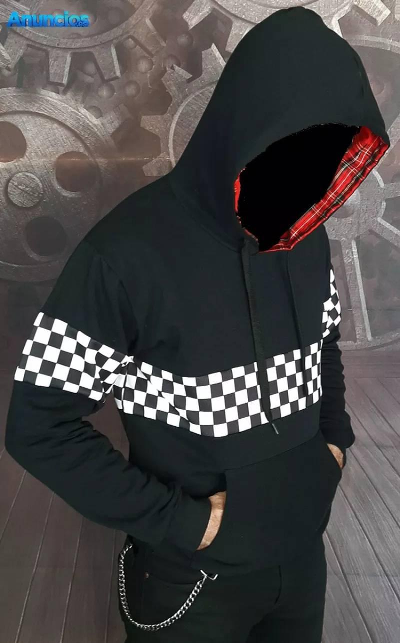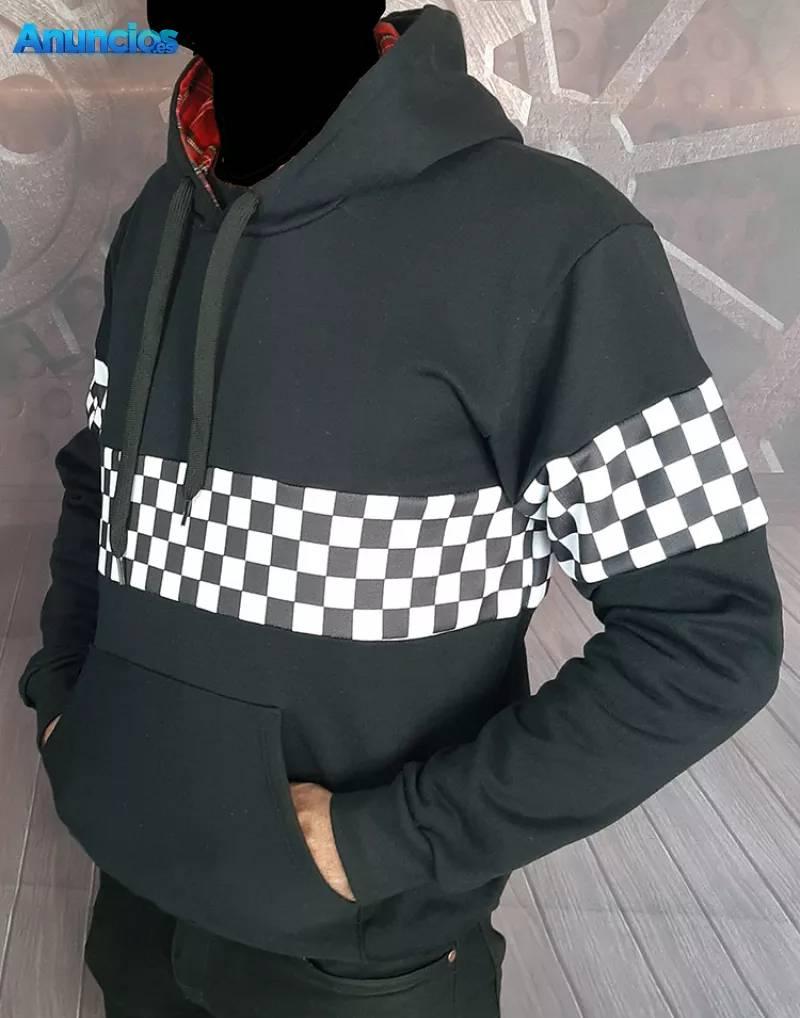 Sudaderas con cuadros blanquinegros Ska en mangas y cuerpo (por delante + detrás)