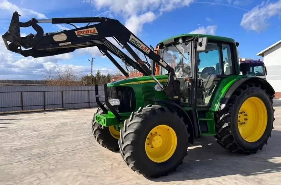 Importacion directa de Polonia. Se vende Tractor agricola John Deere 6420 Premium en ideal estado, del 2003, 120 CV, 7.812 horas, suspension eje delantero, clima, cargador frontal/ pala Stoll Robust F 31 autonivelante, caja Auto Quad 24×24, procede de Alemania. Precio NETTO.