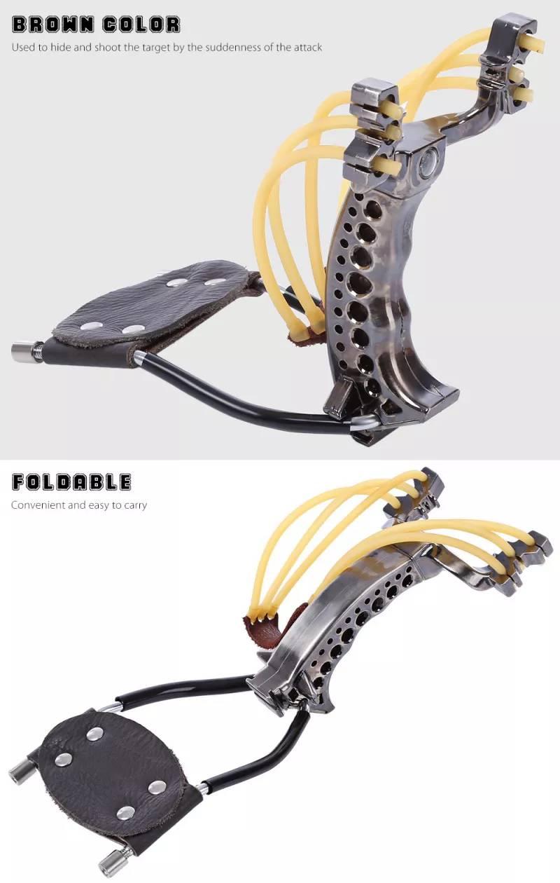 Poderoso tirachinas de caza con 3 tubos de goma banda de cuero profesional táctico de bolsillo.