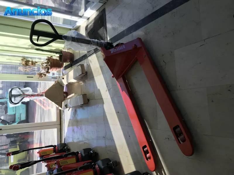 Transpaleta manual con horquillas anchas, marca TAILIFT, modelo DF-III, capacidad de carga 2.500 kgs, ruedas y rodillos dobles poliuretano y horquillas de 1.220 x 680 mm.