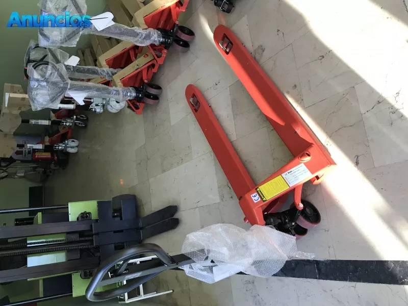 Transpaleta manual con horquillas anchas, marca TAILIFT, modelo DF-III, capacidad de carga 2.500 kgs, ruedas y rodillos dobles poliuretano y horquillas de 1.220 x 680 mm.