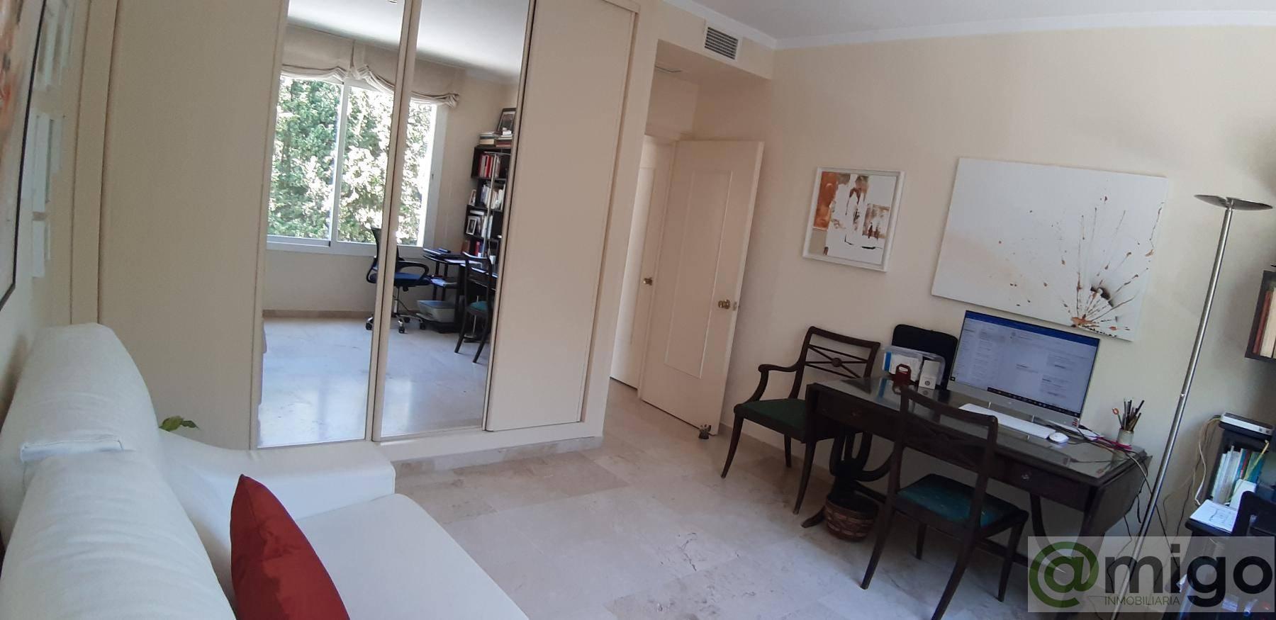 Apartamento Bajo, 2 dormitorios, 2 baños, 2 garajes, Buen estado, en San Pedro de Alcántara, Málaga Perfectamente situado en primera línea de golf, en Guadalmina Golf, Guadalmina Alta.Este apartamento se encuentra en una primera planta, con orientación suroeste, lo que le proporciona una gran luminosidad.Al entrar, nos encontramos con un recibidor que da paso al amplio salón, con chimenea de leña. Este salón ha sido ampliado con la incorporación de toda la terraza, la cual se puede abrir en gran parte gracias a los grandes ventanales.Desde el salón, accedemos al dormitorio principal con baño en suite. Este baño se comparte con el segundo dormitorio, que cuenta con una entrada independiente. Actualmente, este segundo dormitorio ha sido adaptado como comedor separado.Accedemos al segundo dormitorio, que en la actualidad funciona como principal, con su baño en suite y salida a un balcón con vistas abiertas. Siguiente dormitorio tiene acceso al segundo baño, situado junto al distribuidor. Este baño cuenta con grandes puertas correderas con espejos que, al deslizarse, revelan una ducha, así como espacio para la lavadora y la secadora.La cocina, está completamente equipada y en perfectas condiciones.Desde el salón, se disfrutan de maravillosas vistas a los jardines comunitarios, al campo de golf y al mar, brindando tranquilidad y privacidad absoluta.La propiedad se vende con dos plazas de garaje, así como un trastero.