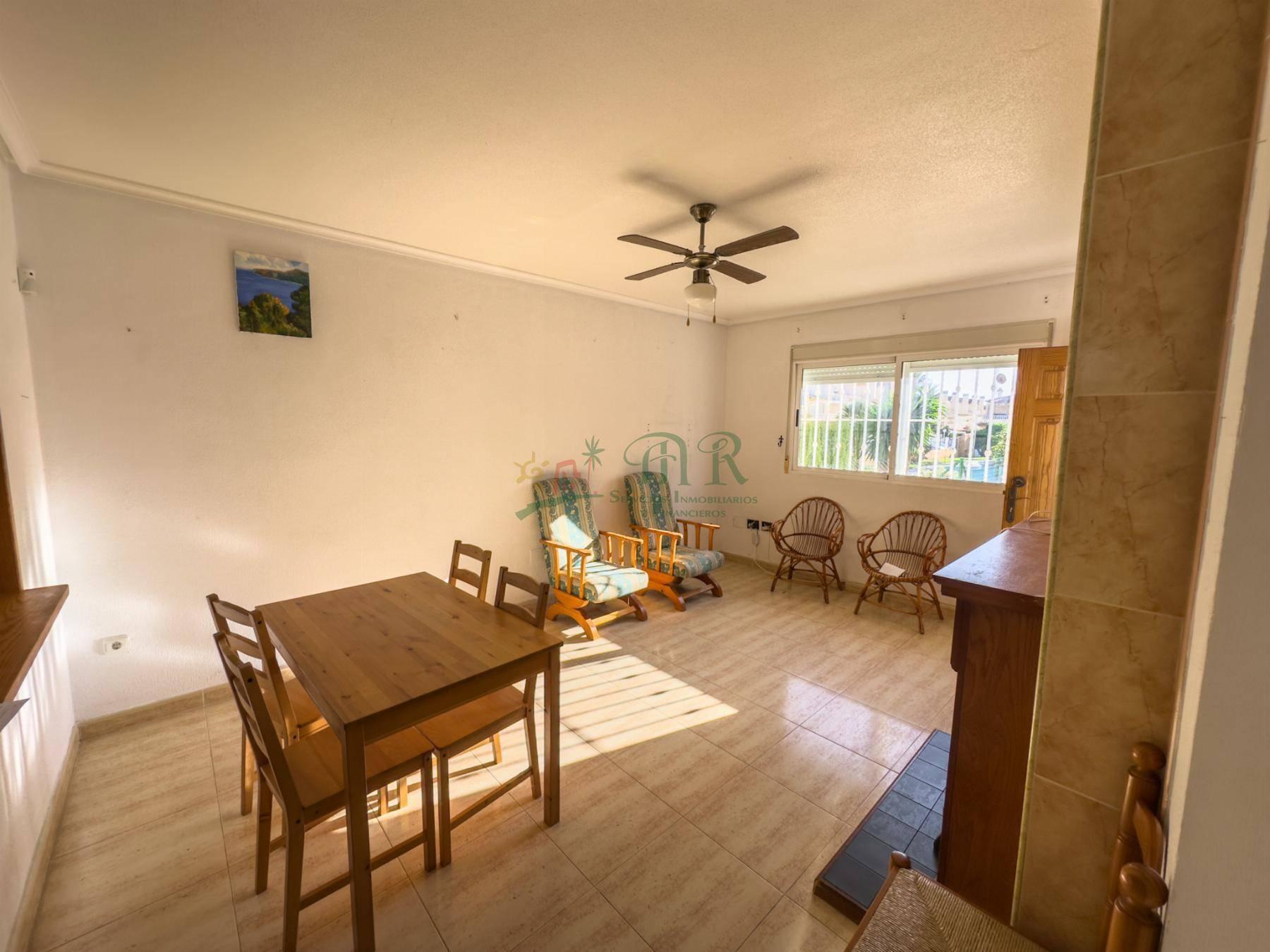 Chalet 3 dormitorios, 2 baños, 0 garajes, Estado de origen, en Orihuela Costa, Alicante Se vende encantador chalet adosado en la prestigiosa urbanización Villa Flamenca. Consta de dos plantas: en la planta baja, encontrará un amplio salón-comedor, cocina, baño y un dormitorio, junto con una acogedora terraza y un pequeño jardín. La primera planta dispone de dos dormitorios, un baño y un amplio balcón parcialmente cerrado(con posibilidades de poder volver a abrir). Las vistas del chalet se abren a una agradable piscina comunitaria, ofreciendo un entorno perfecto para relajarse. La propiedad necesita algunas reformas, pero su excelente ubicación, muy cerca del centro comercial La Zenia Bulevar, la convierte en una oportunidad única. ¡Ideal para quienes buscan personalizar su nuevo hogar en un entorno privilegiado!¿Te gustaría hacer una visita y proponer una OFERTANo dejes pasar esta oportunidad.